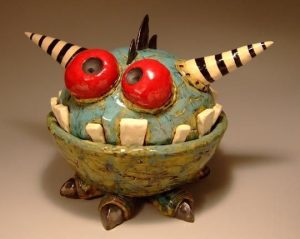 once your monster is complete we’ll dry it off and then hand paint it with glazes,you can add what ever designs you like and then they’ll be fired and ready to collect within two weeks.